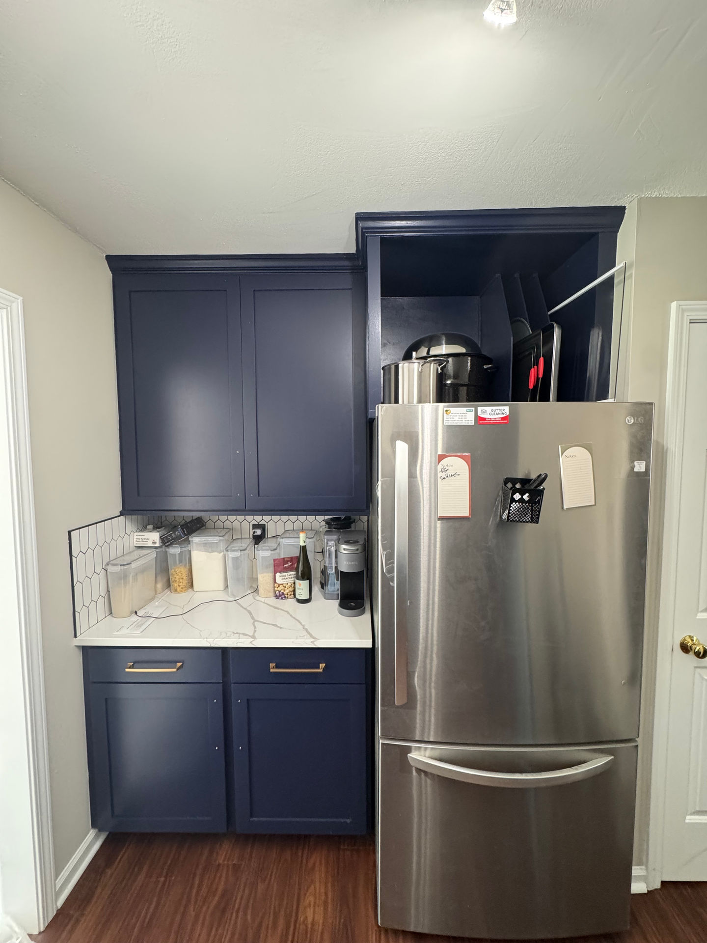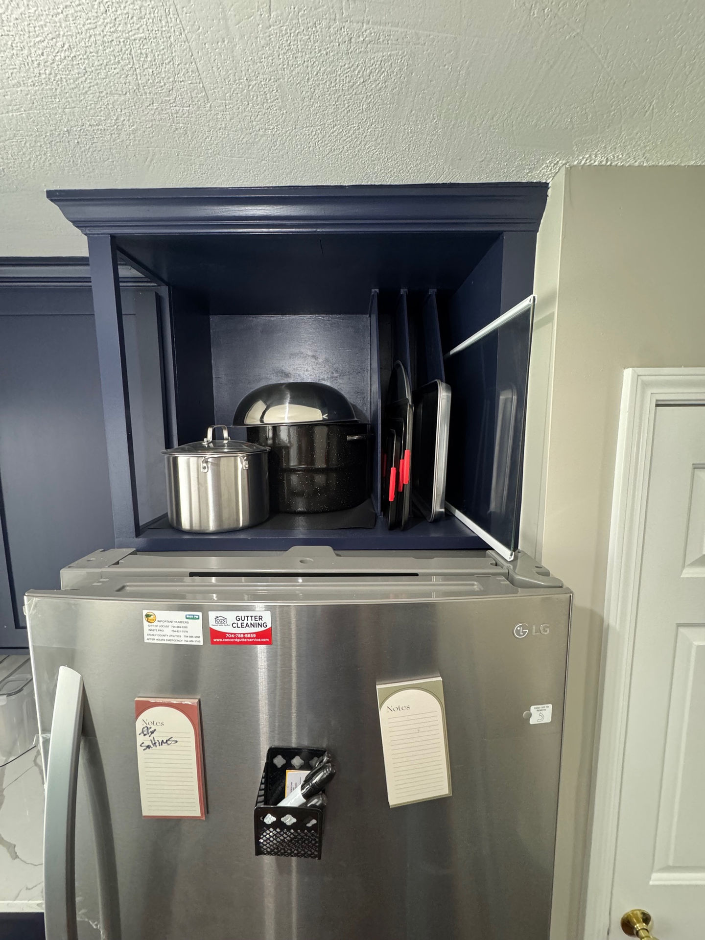 I removed the old cabinets and designed custom cabinets that fit the kitchen space while maximizing storage space for the homeowner.